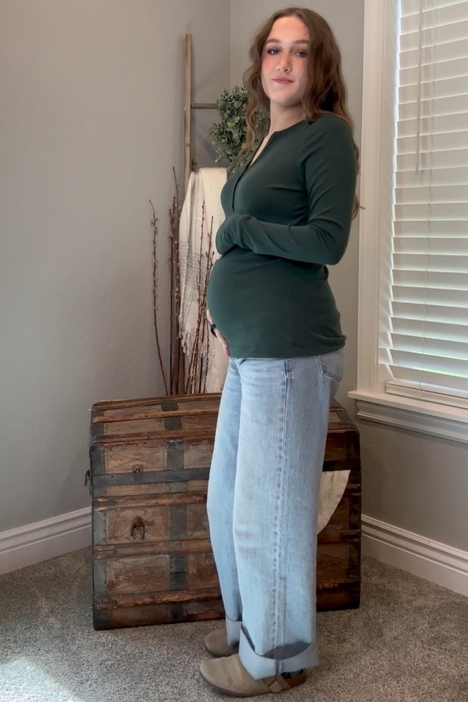 Our maternity clothing is designed to be worn before, during, and after pregnancy! Look for the post-bump tag on our maternity clothes for styles that also flatter postpartum. If baby is here (or near!) our bump-friendly nursing clothes are stylishly at-the-ready whether you're at week ten or past week forty.