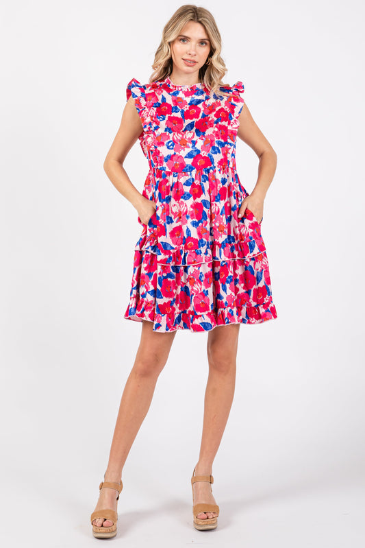 Red Floral V-Neck Tiered Maternity Midi Dress