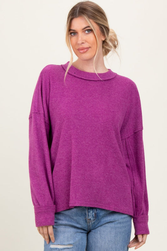 Black Textured Modal Knit Loose Fit Maternity Top & Shorts Set