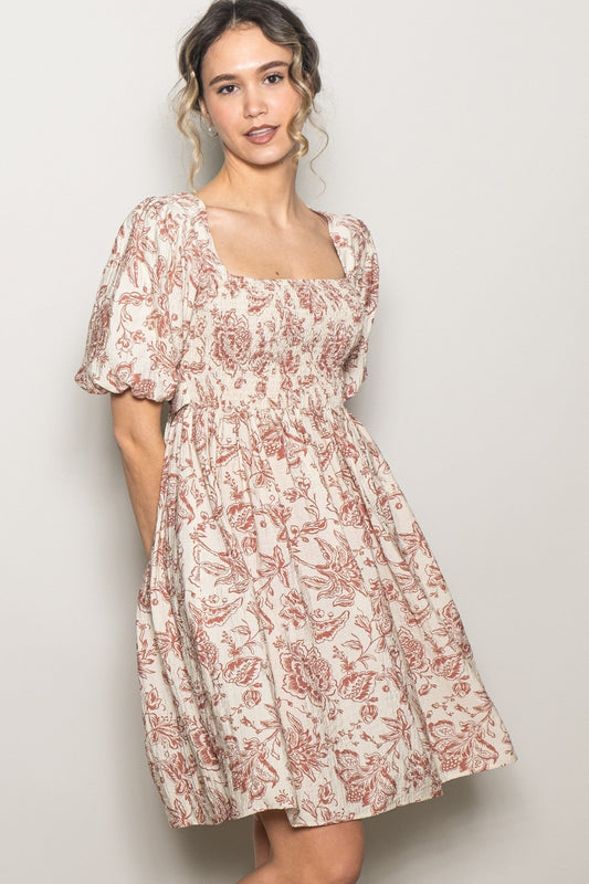 Rust Floral Print Ruffle Hem Maternity Midi Dress