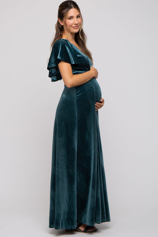 SAVE 48%Teal Velvet Maternity Maxi Dress