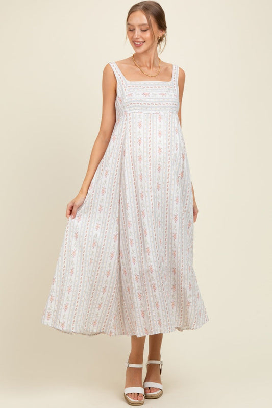 Light Gray Cotton Floral Square Neck Sleeveless Maternity Maxi Dress