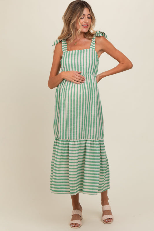 Jade Striped Shoulder Tie Maternity Midi Dress
