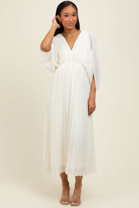 Forest Green Floral Pleated Chiffon Maternity Plus Midi Dress