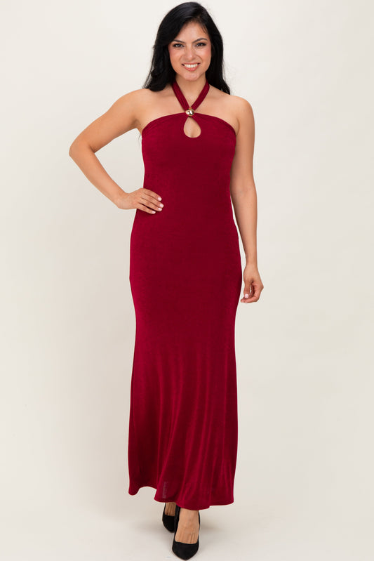 Brown Textured Rib Quarter Zip Maternity Maxi Dress