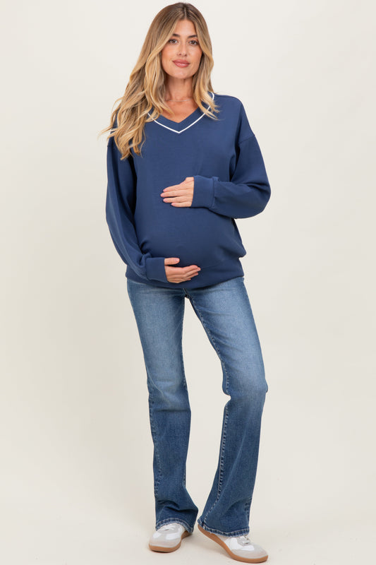 Olive Fine Rib Scoop Neck Maternity Long Sleeve Top