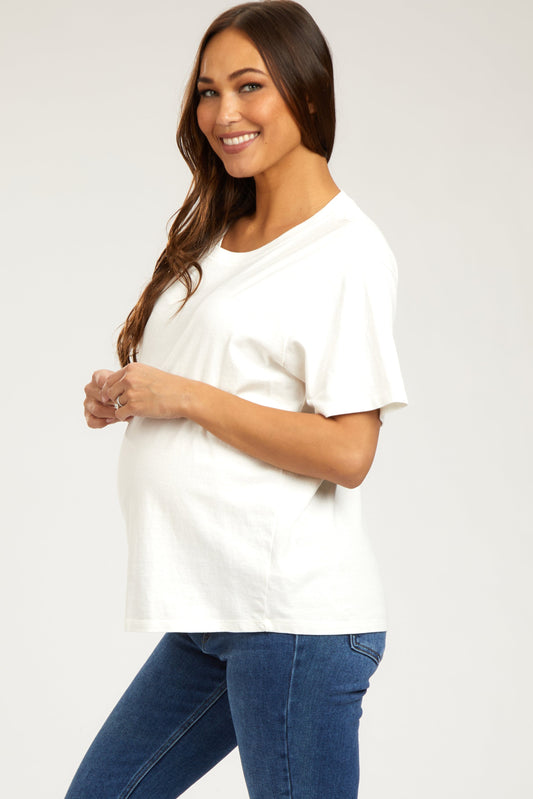 White Oversized V-Neck Front Pocket Maternity T-Shirt