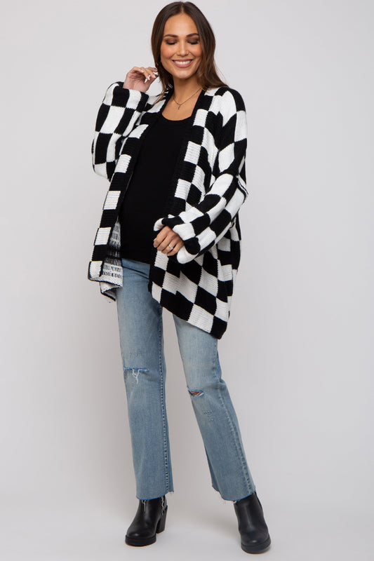 Black Chunky Knit Long Sweater Maternity Cardigan