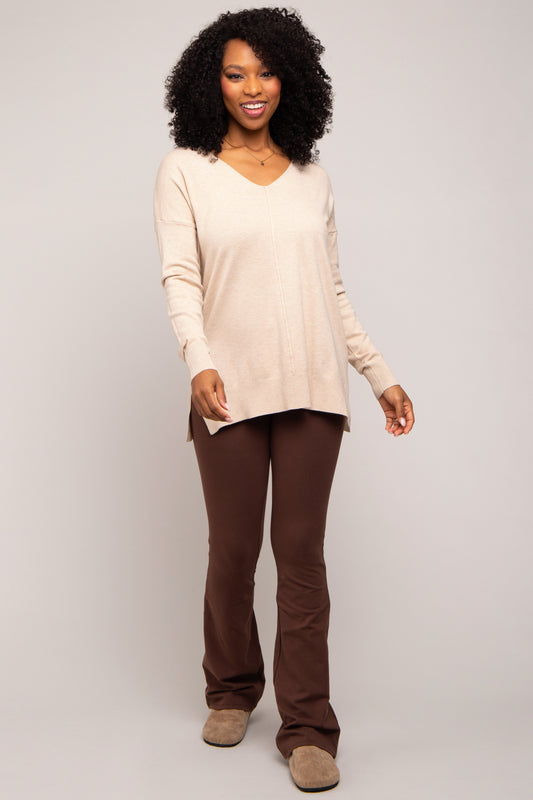 Beige Long Sleeve Raised Seam Maternity Sweater