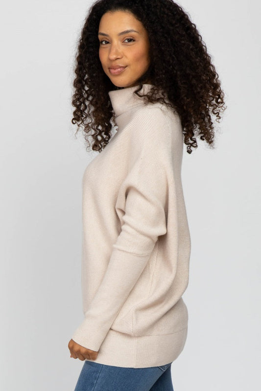 Beige Funnel Neck Dolman Sleeve Maternity Sweater