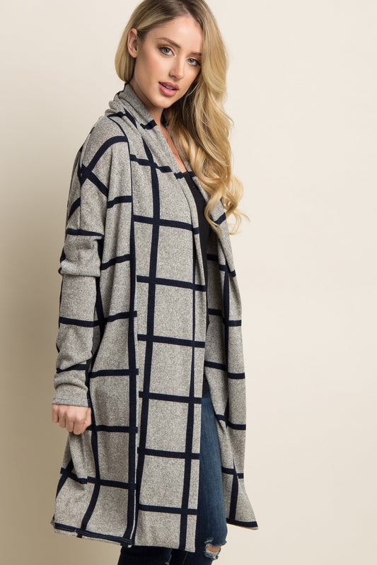 PinkBlush Grey Plaid Long Knit Maternity Cardigan