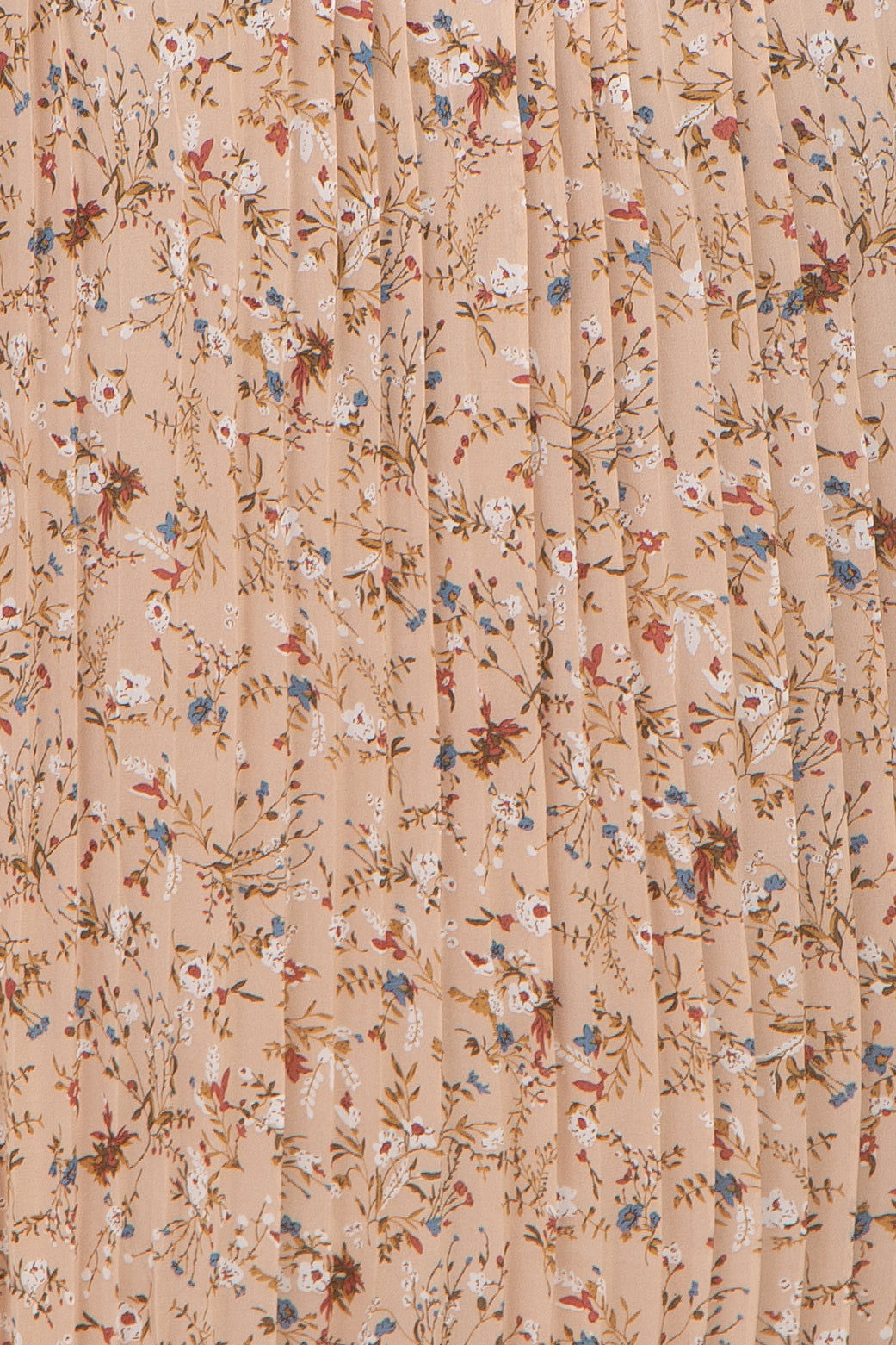 Beige Floral Pleated Chiffon Plus Midi Dress