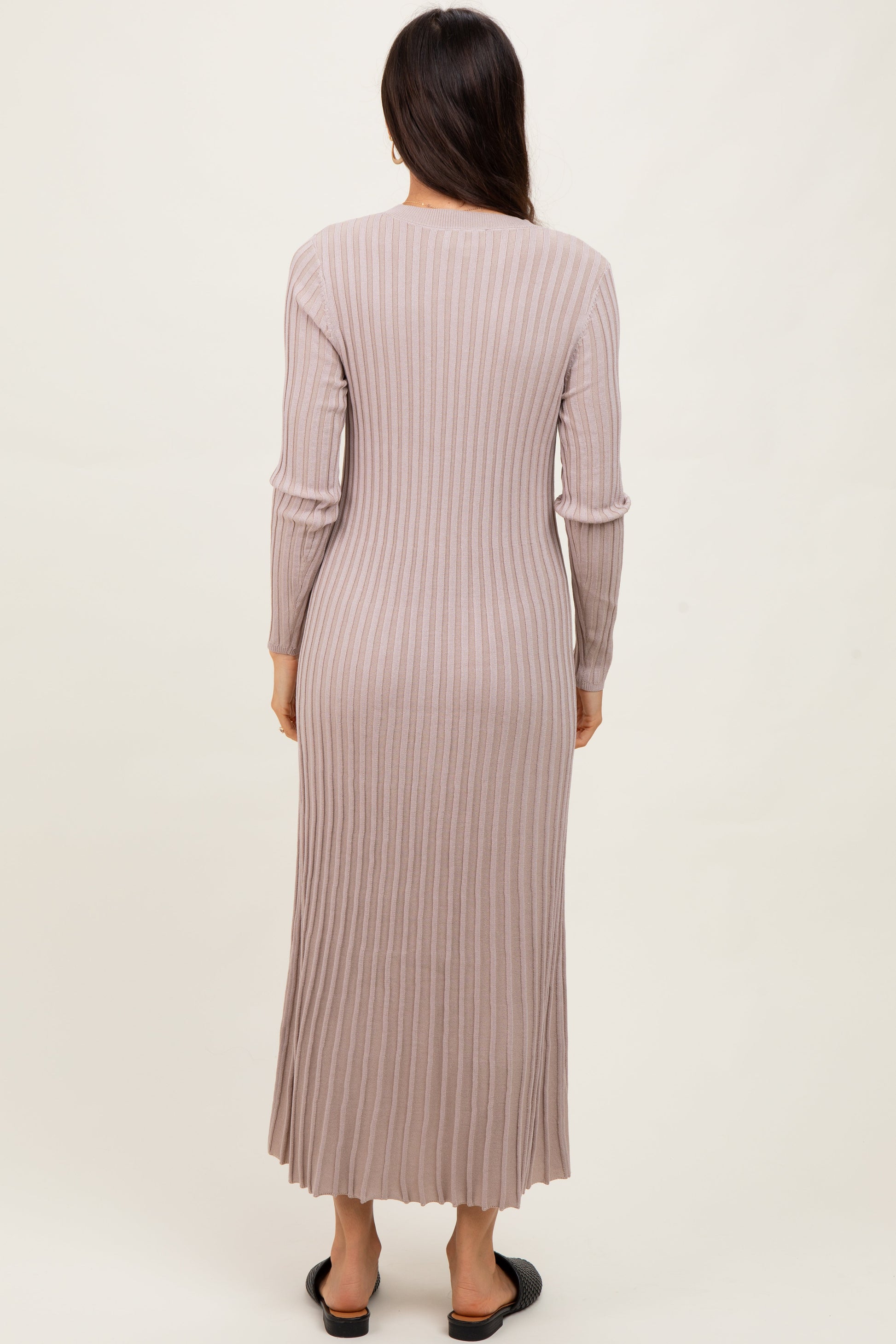Beige Ribbed Long Sleeve Sweater Midi Dress