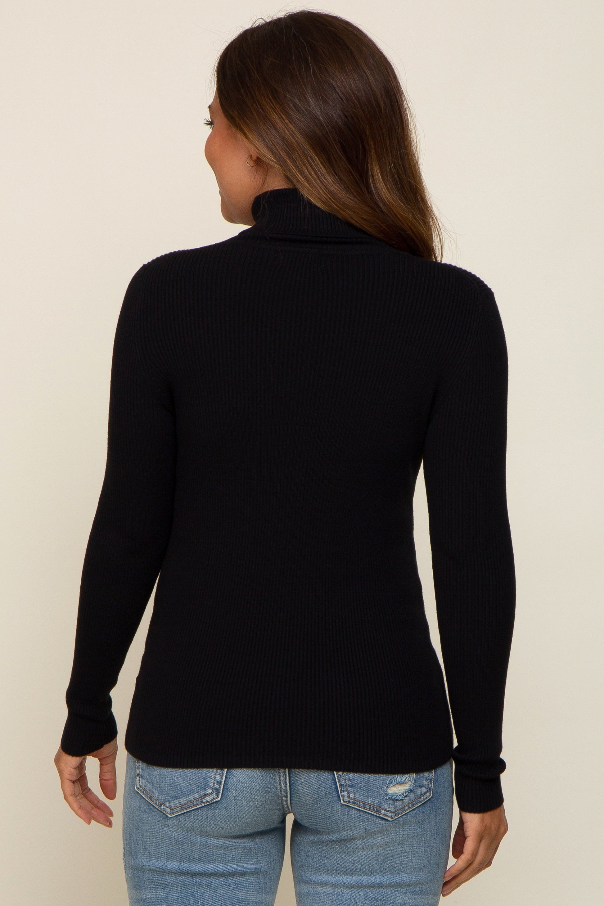 A ribbed fitted maternity top featuring long sleeves and a mock neckline.
