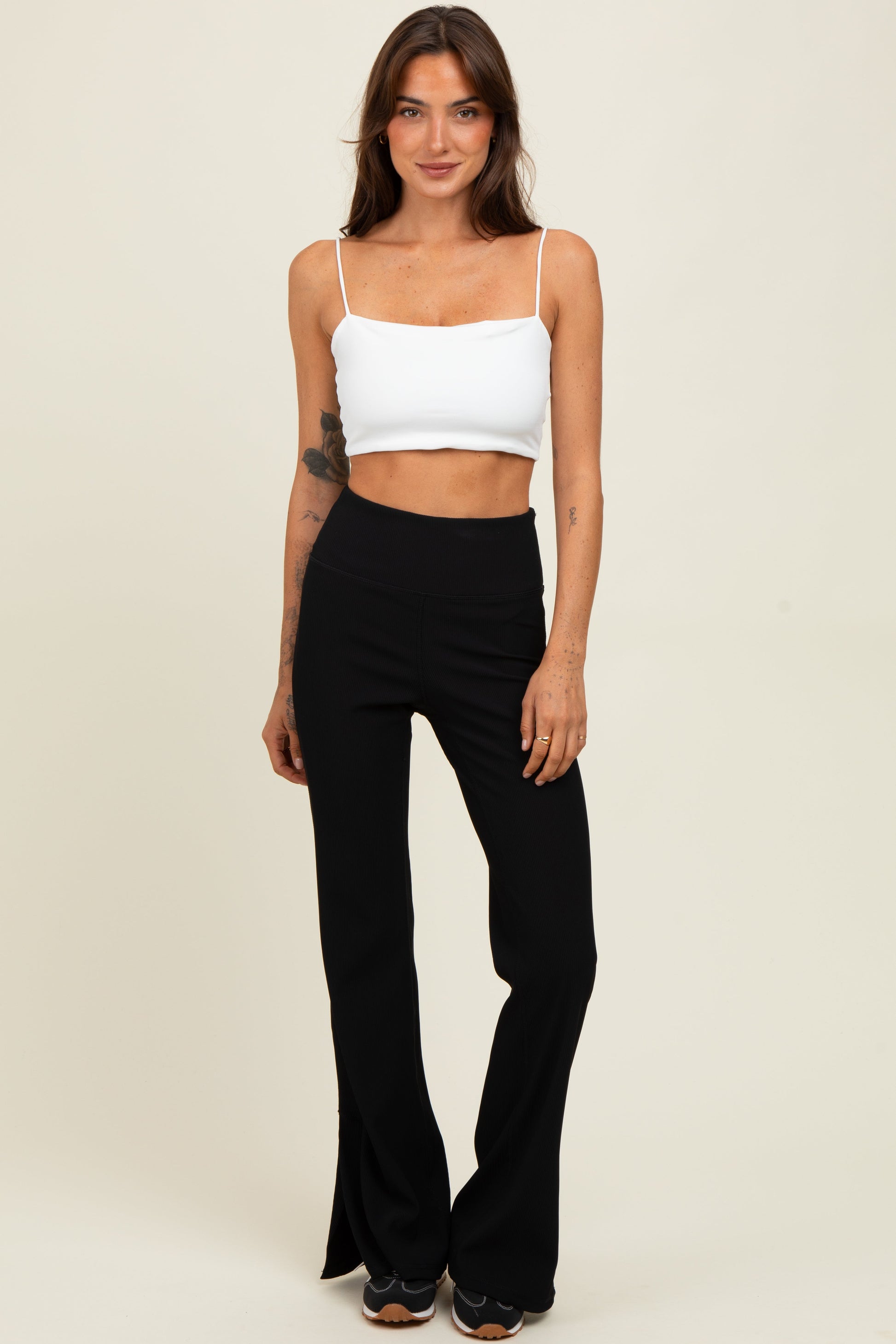 Experience comfort and style with our Black Ribbed Split Flare Maternity Leggings. Crafted from soft, stretchy ribbed fabric, these leggings provide a flattering fit that grows with your bump. The high-rise, supportive waistband gently hugs your belly for all-day comfort and flexibility. Featuring a trendy split flare hem, these leggings offer a modern twist on a classic maternity essential. Perfect for casual wear or dressing up, they pair effortlessly with your favorite tops and shoes. Elevate your maternity wardrobe with these chic, versatile leggings designed to keep you comfortable and stylish from pregnancy to postpartum.
