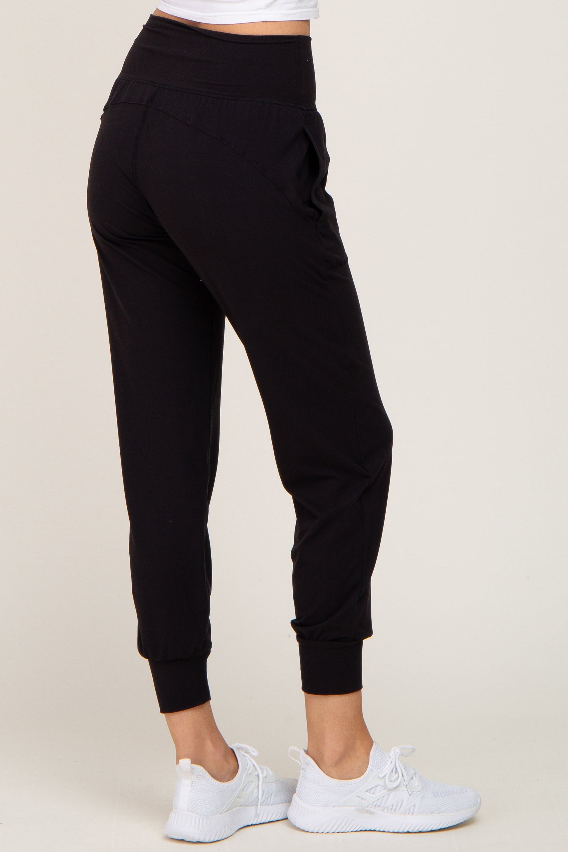 A pair of solid hued joggers. Pocketed.