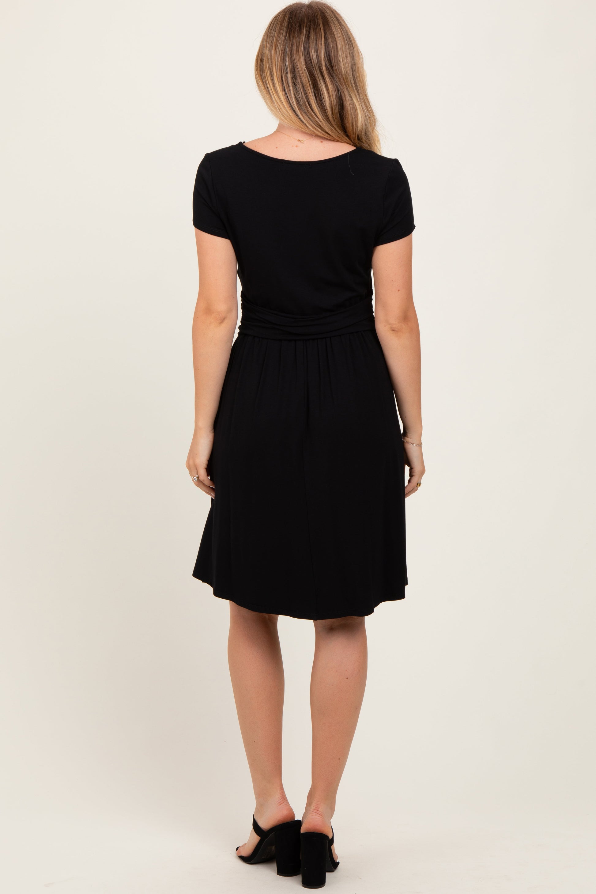 Black Twist Front Short Sleeve Dress