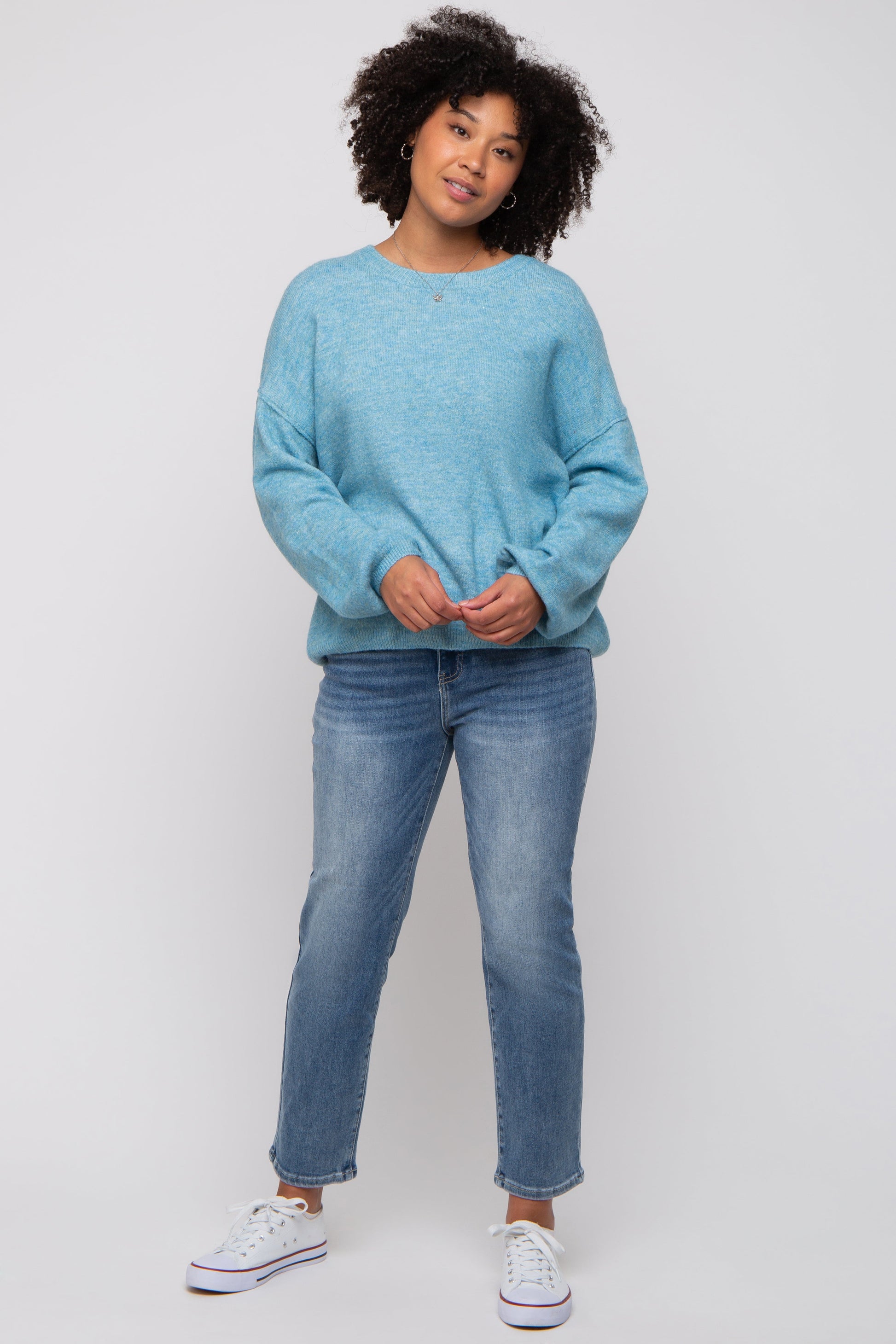 Blue Basic Drop Shoulder Sweater