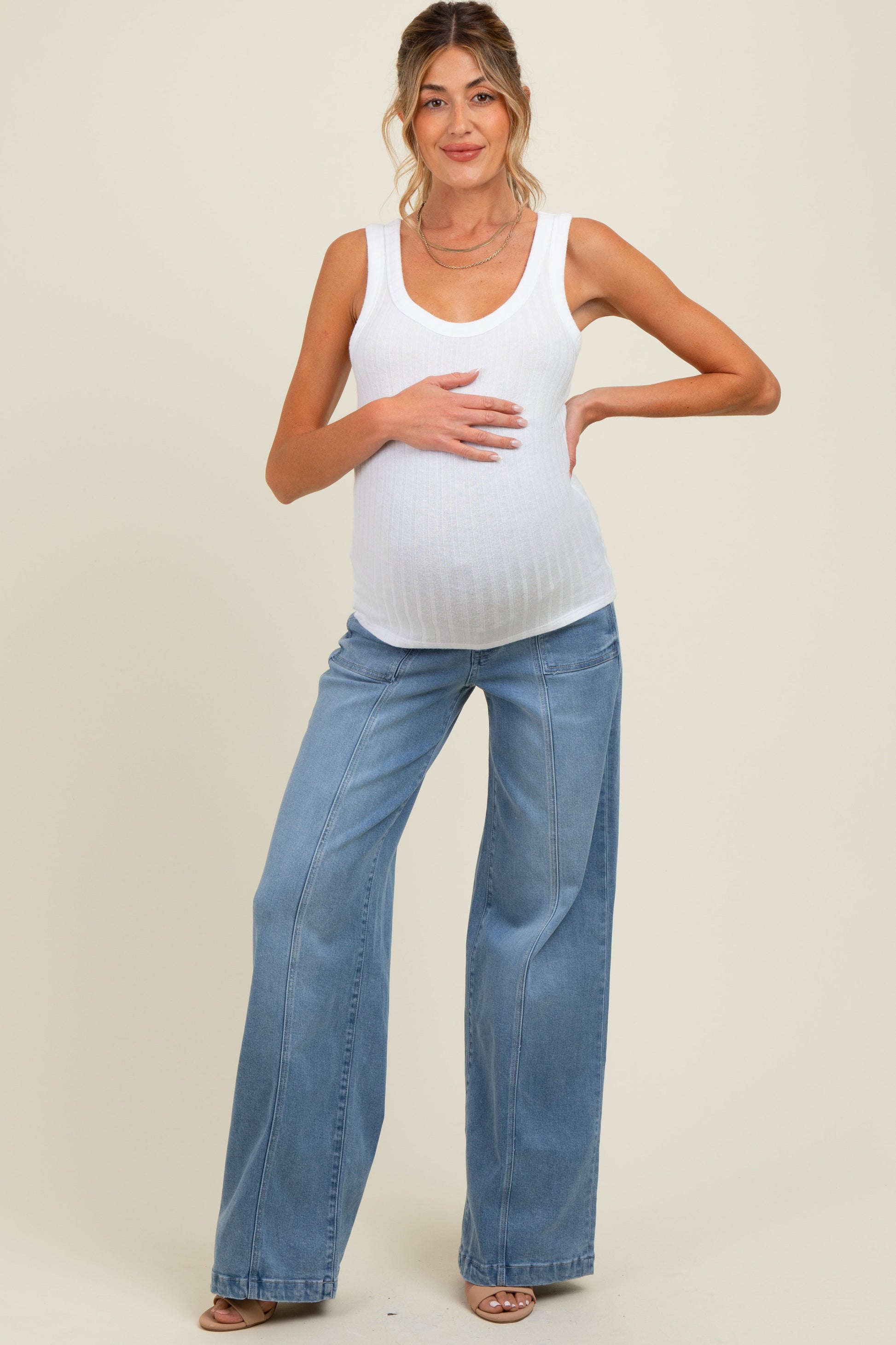 Blue Front Seam Super Wide Leg Maternity Jeans