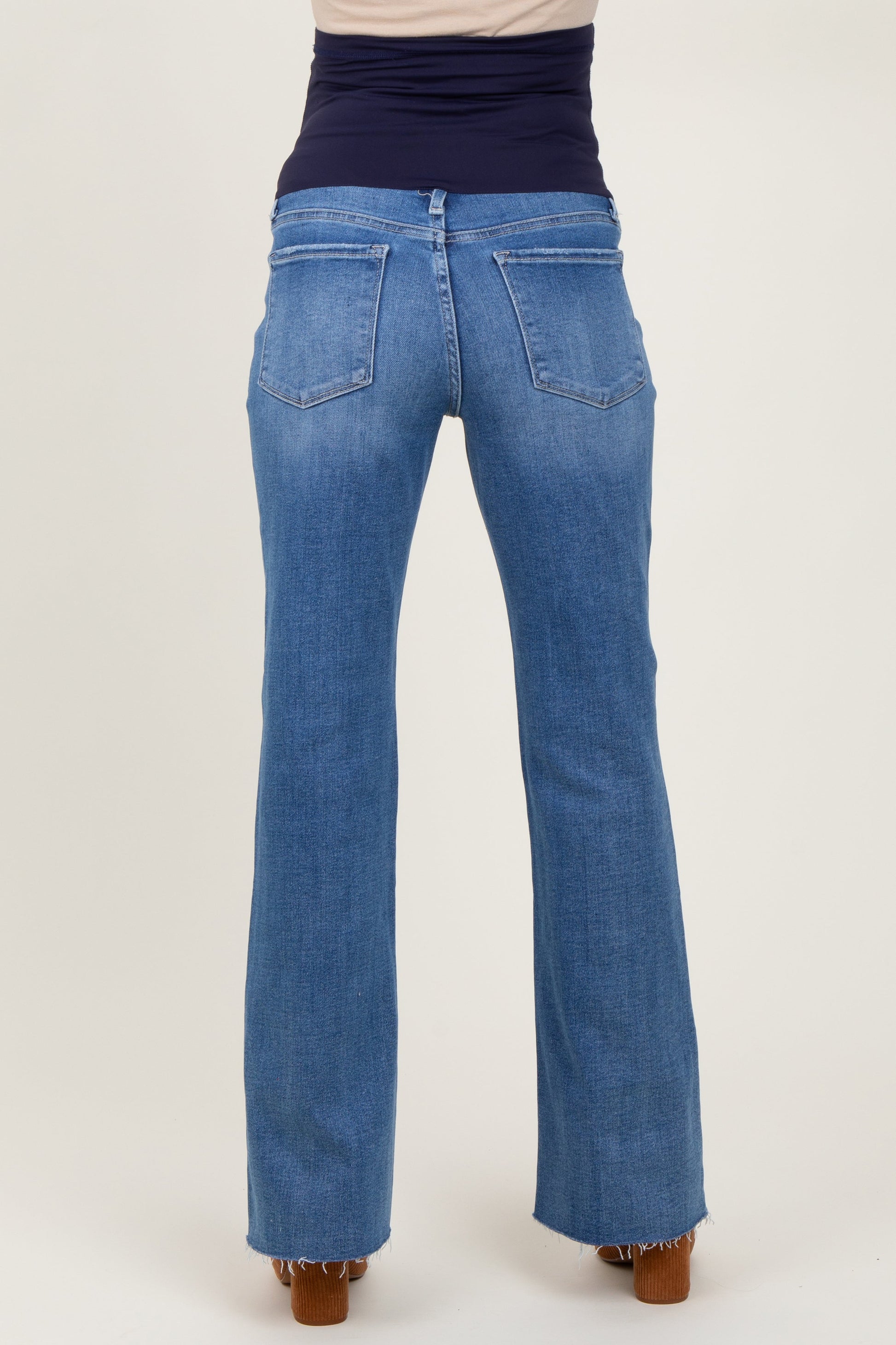 Blue Raw Cut Hem Flare Leg Maternity Jeans