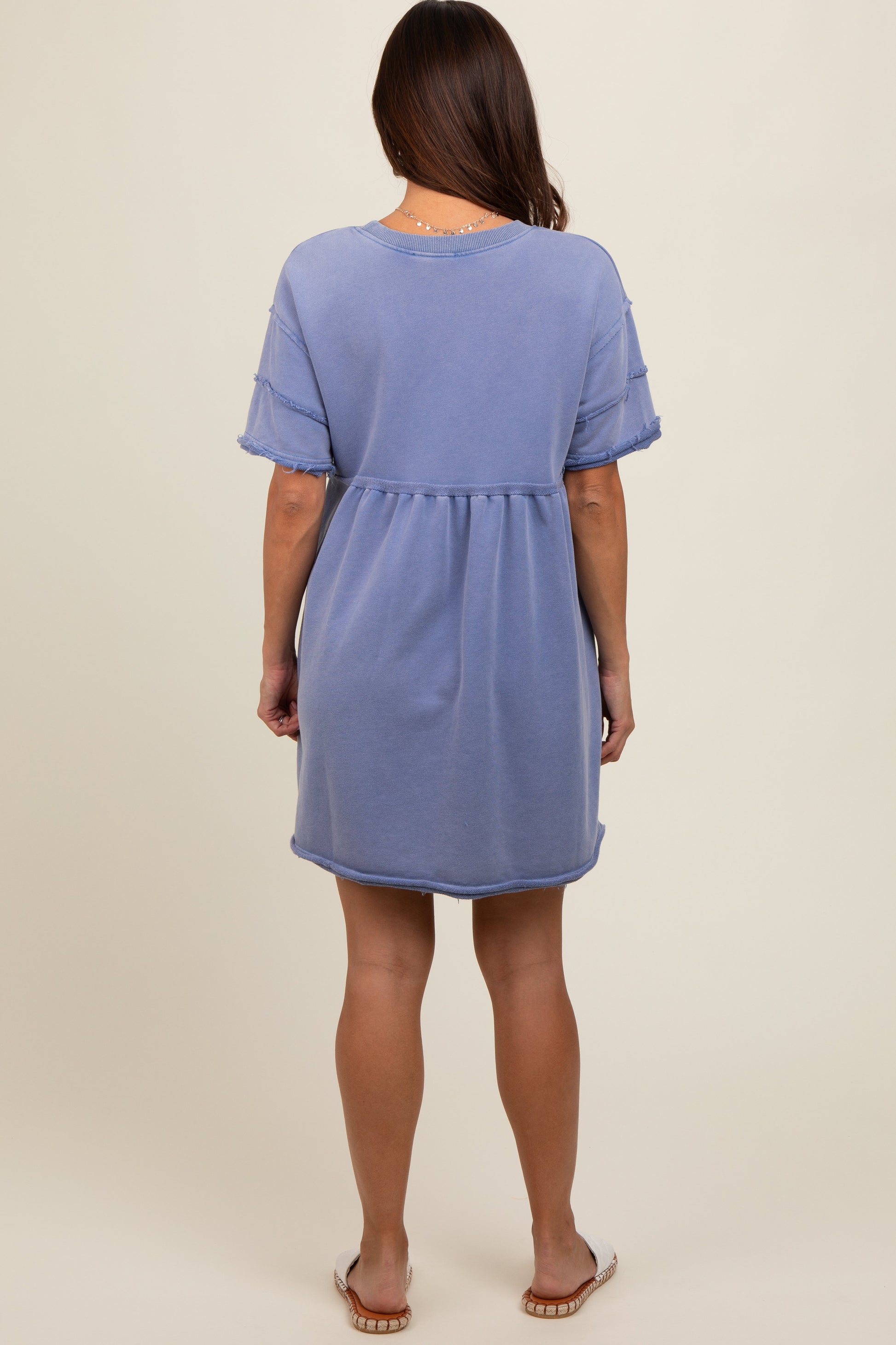 Effortlessly chic and oh-so-comfy, our Blue Raw Hem Maternity Short Sleeve Dress is your new go-to for every stage of pregnancy. Crafted from soft, stretchy fabric, this dress features a beautiful blue hue, flattering round neckline, and playful raw edge hem for an on-trend touch. The relaxed fit accommodates your growing bump while keeping you cool and comfortable all day long. Dress it up with sandals or keep it casual with sneakers—this versatile piece is perfect for baby showers, brunch, errands, and more. Celebrate your bump in style!