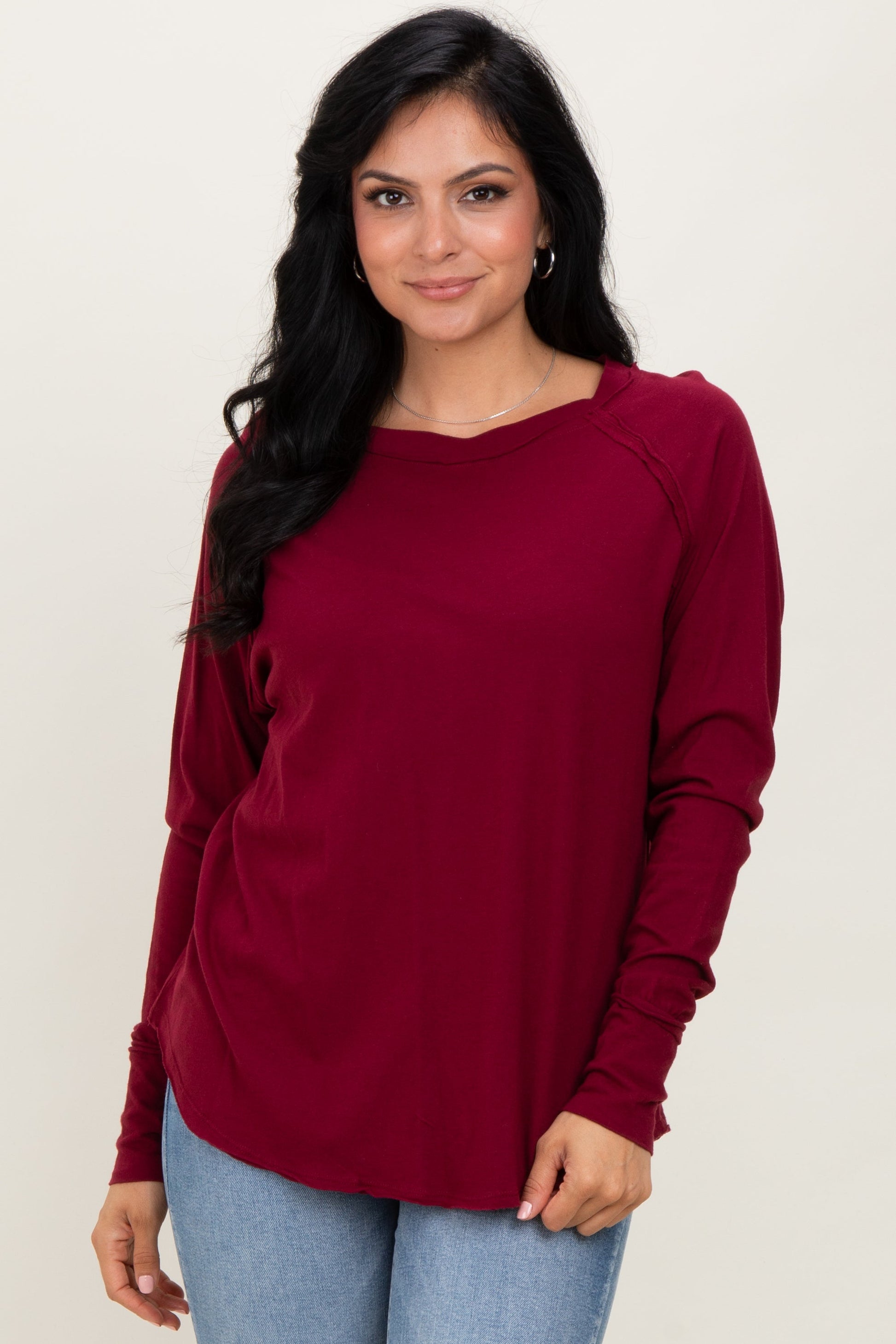 Burgundy Exposed Seam Long Sleeve Maternity Top