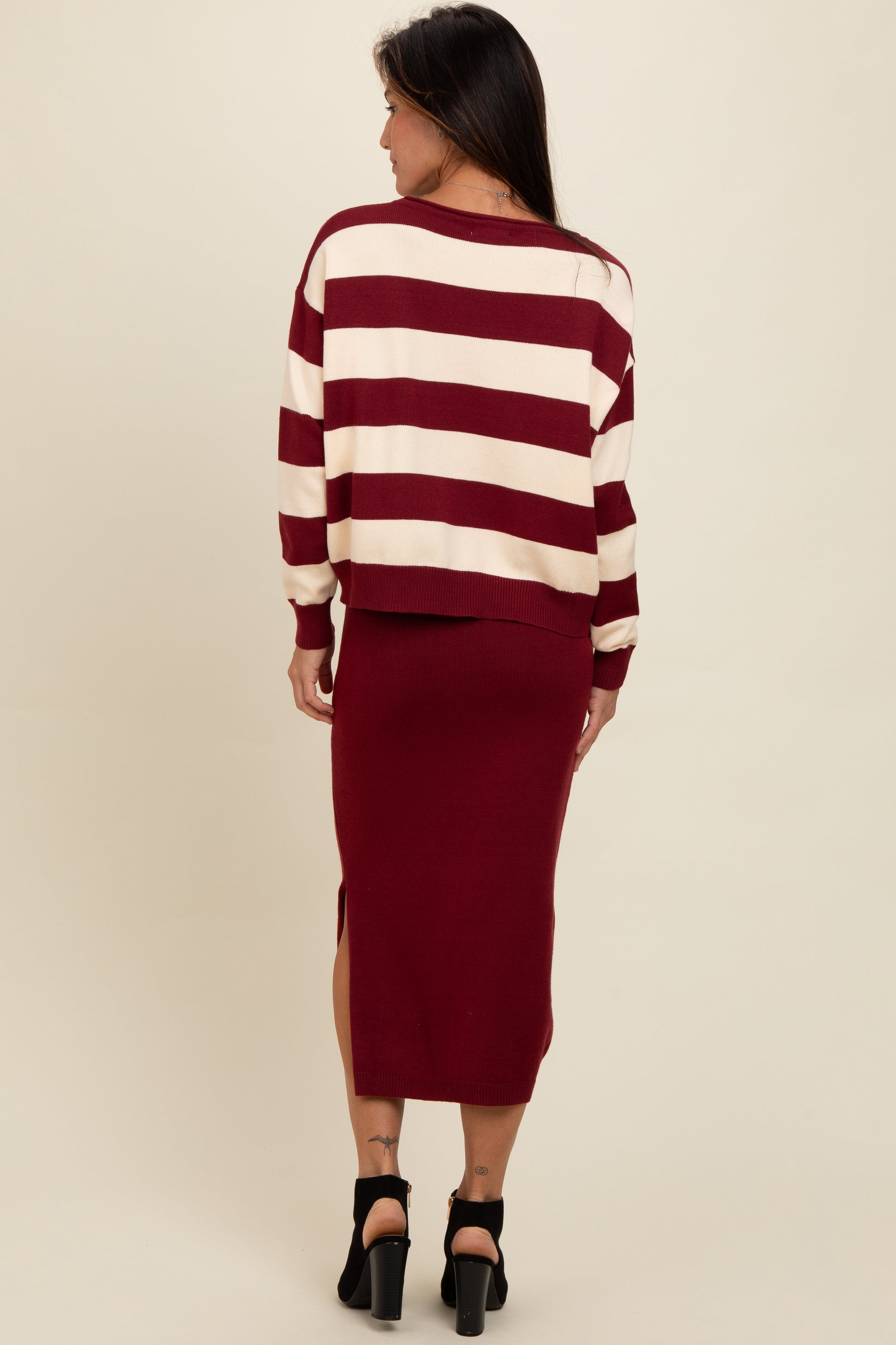 Burgundy Striped Sweater And Fitted Midi Skirt Set