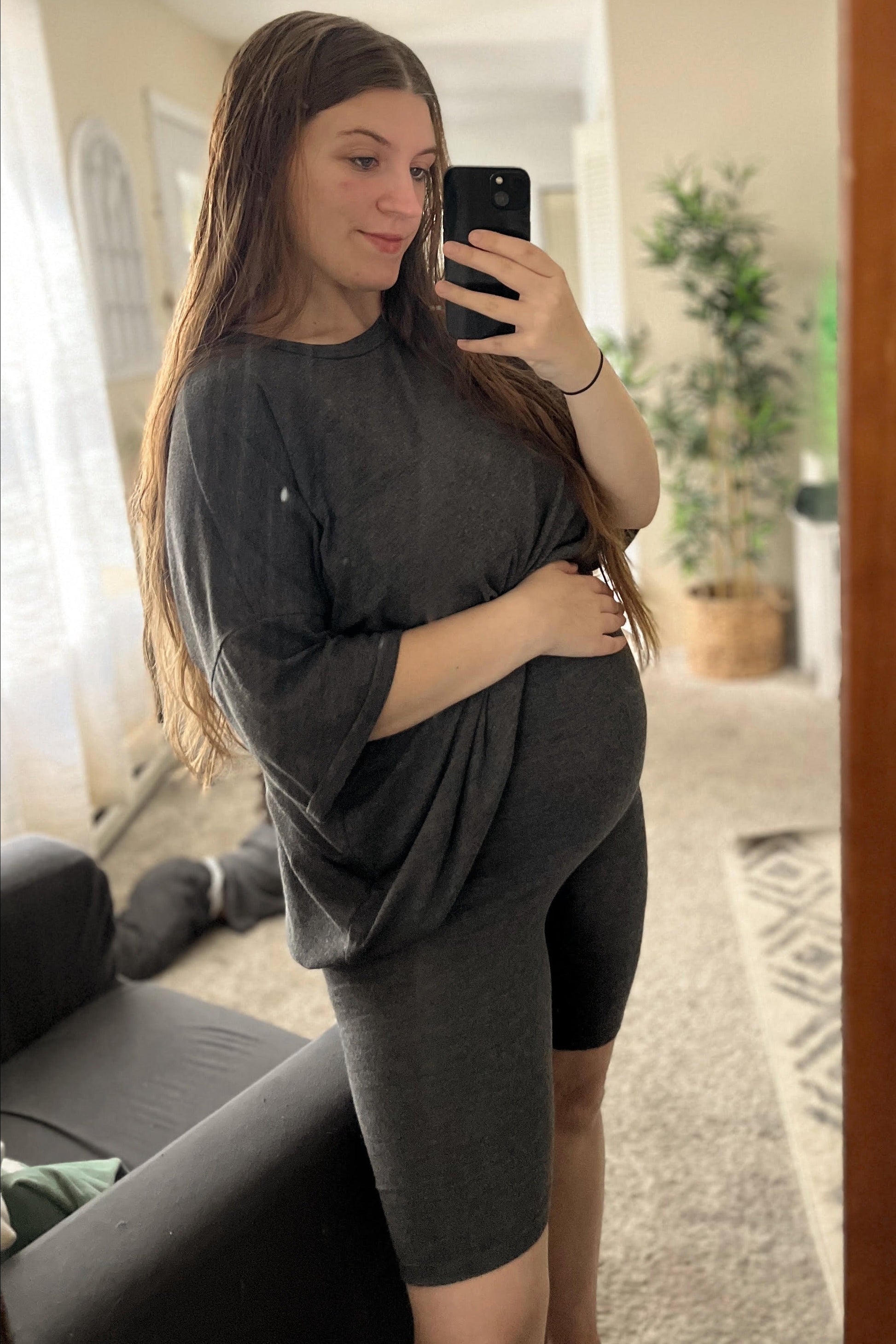 Charcoal Biker Short Maternity Sleep Set