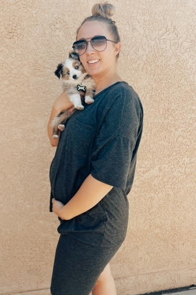 Charcoal Biker Short Maternity Sleep Set
