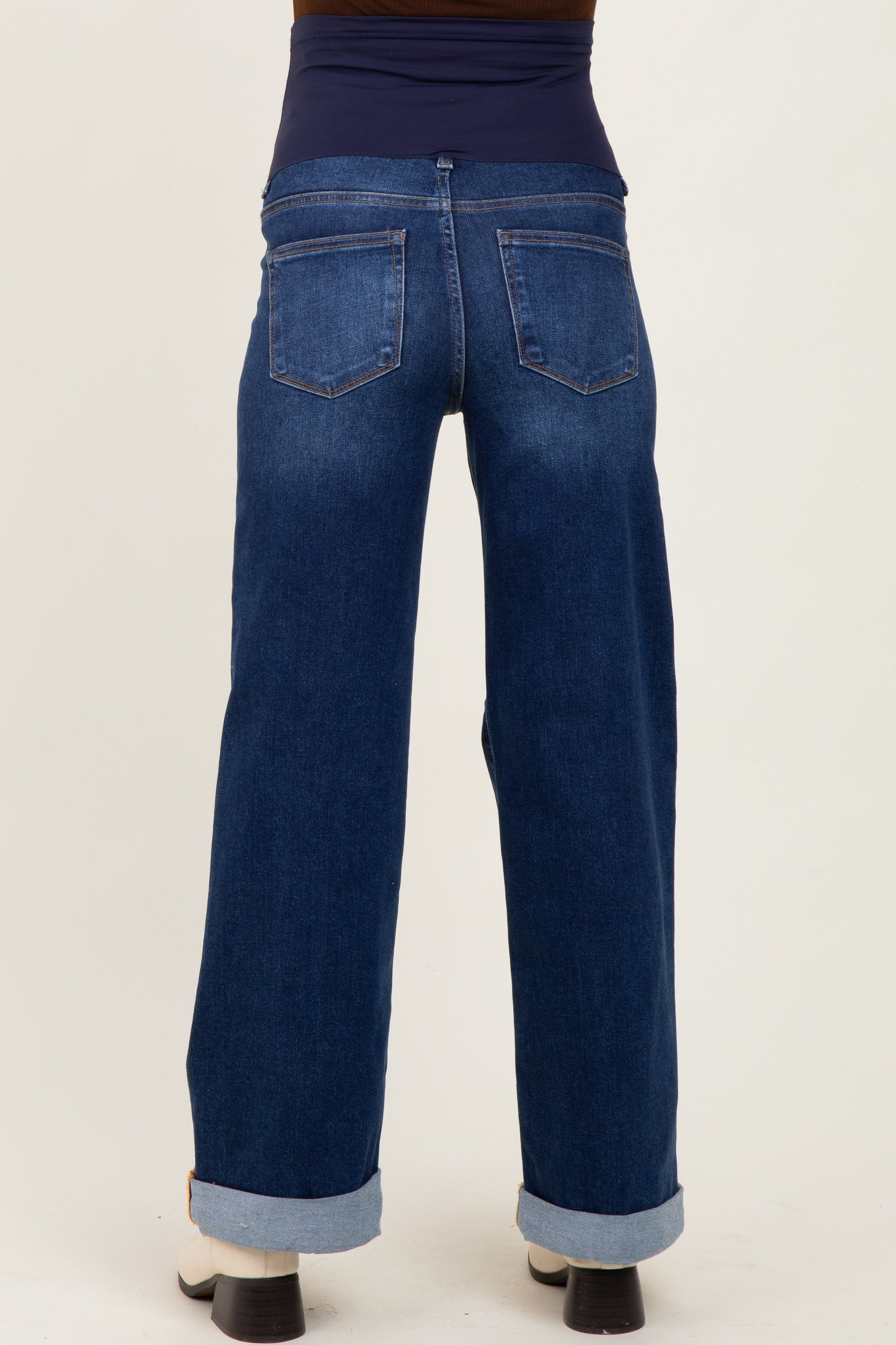 Dark High Rise Wide Leg Cuffed Maternity Jeans