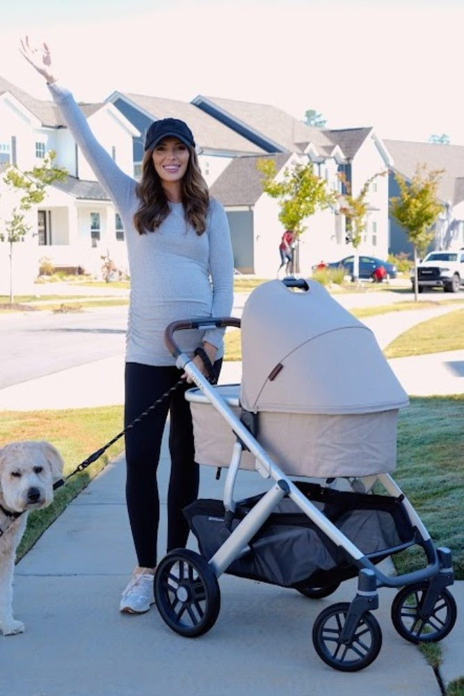 A solid brushed knit maternity long sleeve top with a scoop neckline and ruched sides.