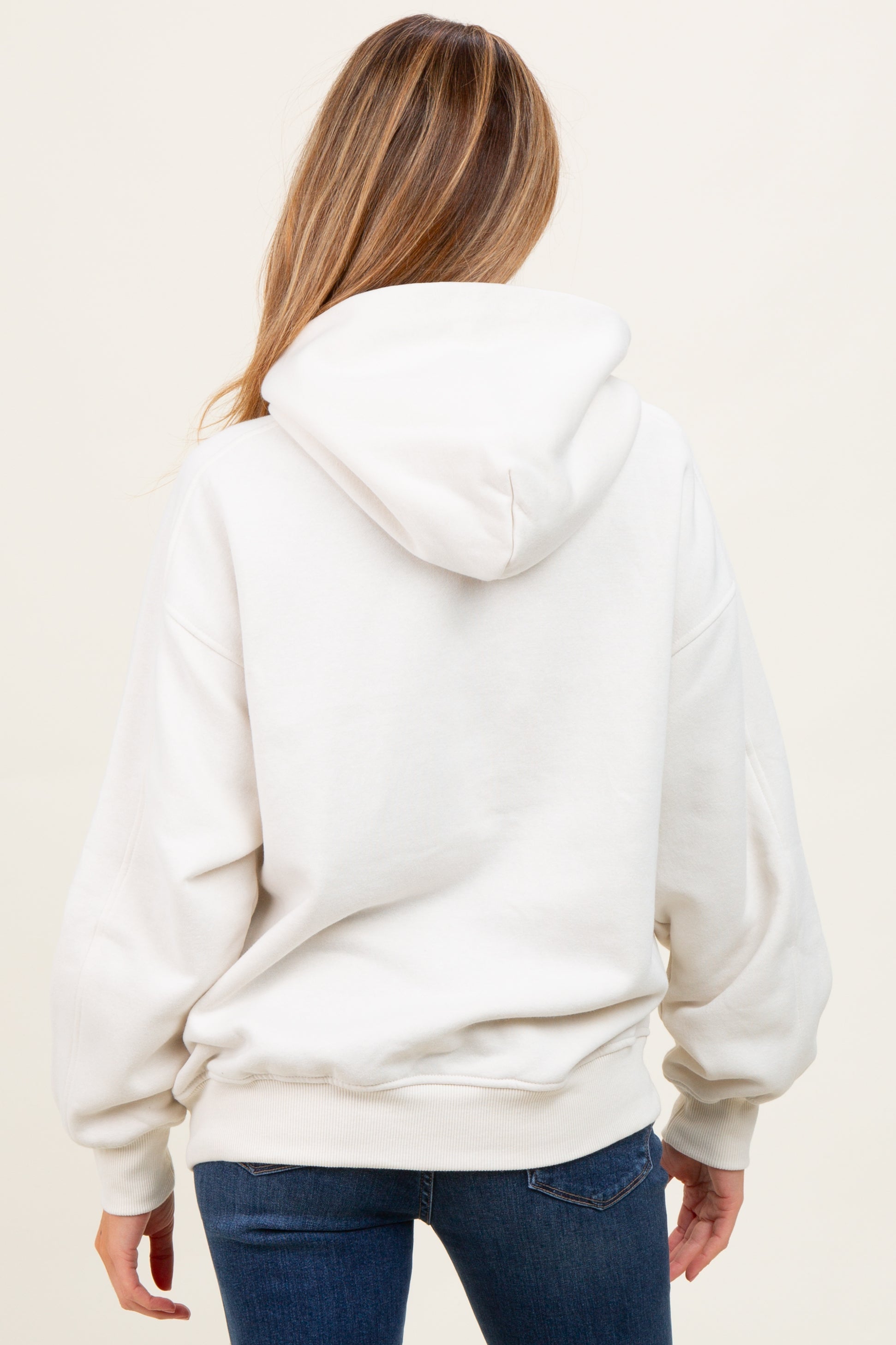 Embrace comfort and style with our Ivory Fleece Oversized Maternity Hoodie. Crafted from ultra-soft fleece, this hoodie keeps you cozy throughout your pregnancy and beyond. Its oversized fit offers plenty of room for your growing bump while providing a relaxed, laid-back look. Featuring a spacious hood and kangaroo pocket, it’s perfect for chilly days and casual outings. The timeless ivory shade pairs effortlessly with jeans or leggings, making it a versatile staple in your maternity wardrobe. Stay snug, stylish, and comfortable in every season with this must-have hoodie!