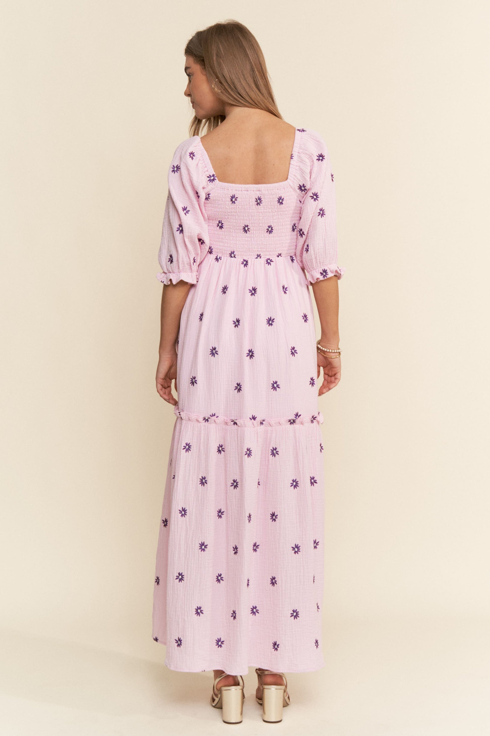 Lavender Floral Smocked Puff Sleeve Maxi Dress
