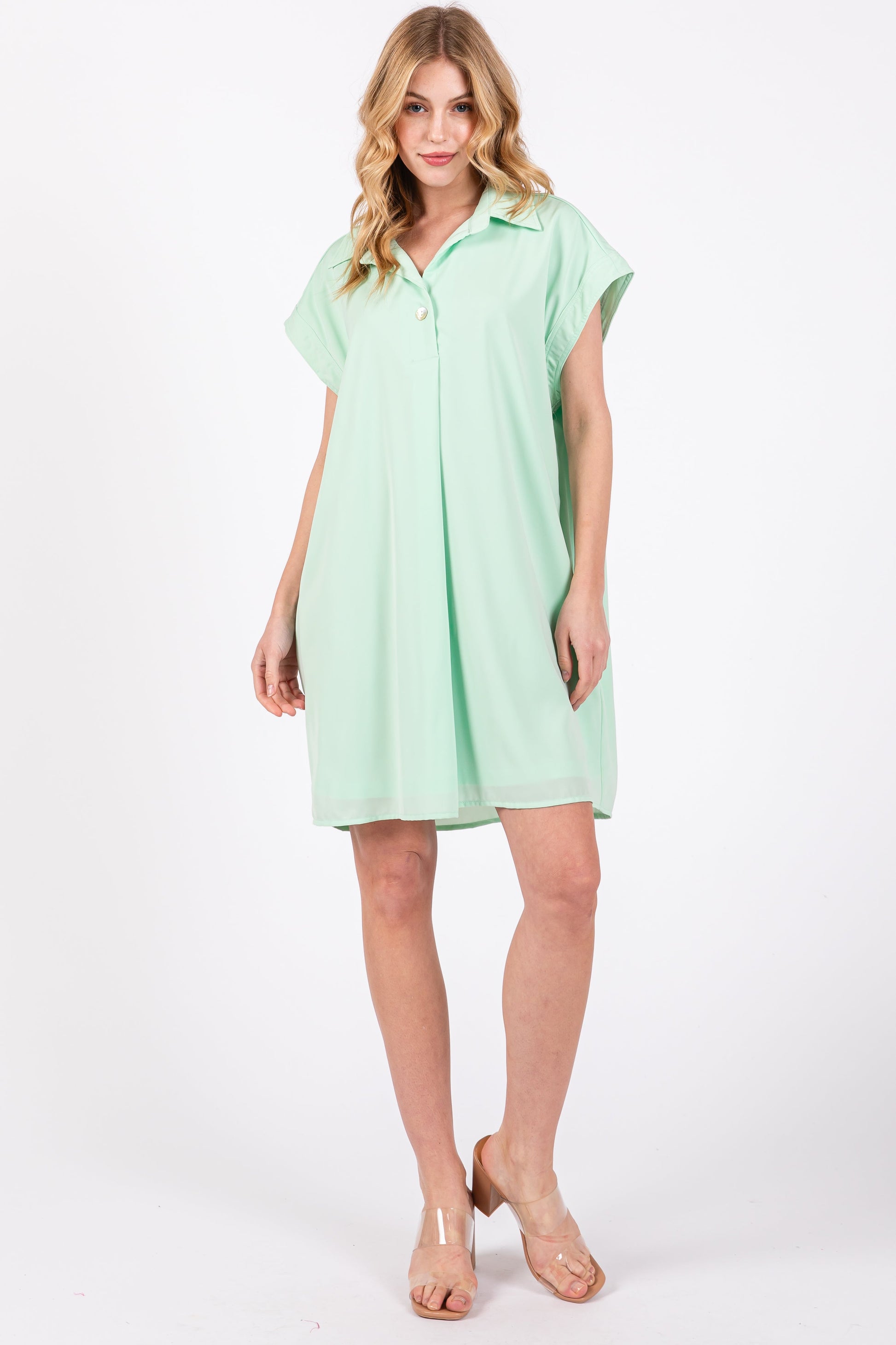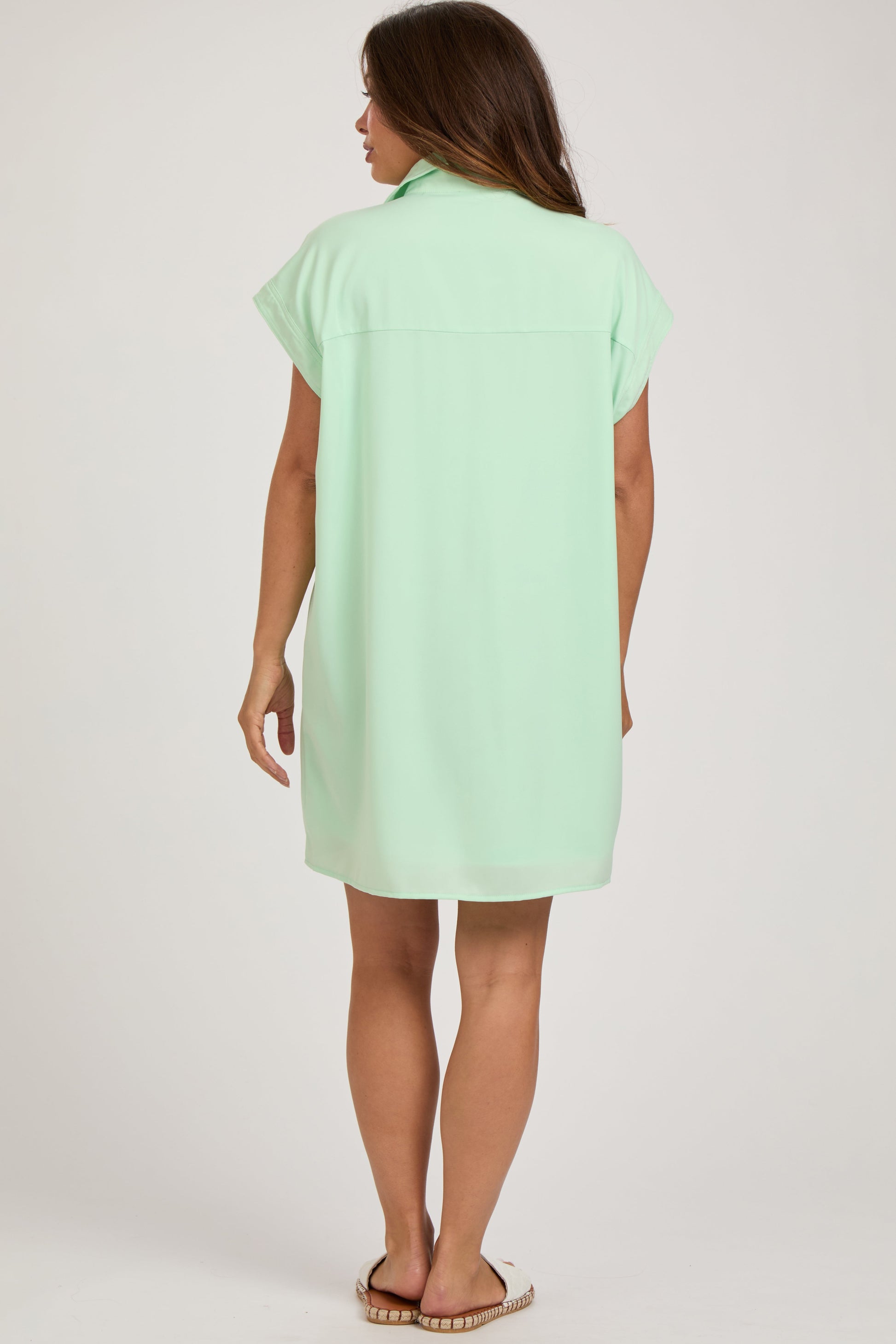 Mint Collared Button Front Maternity Dress
