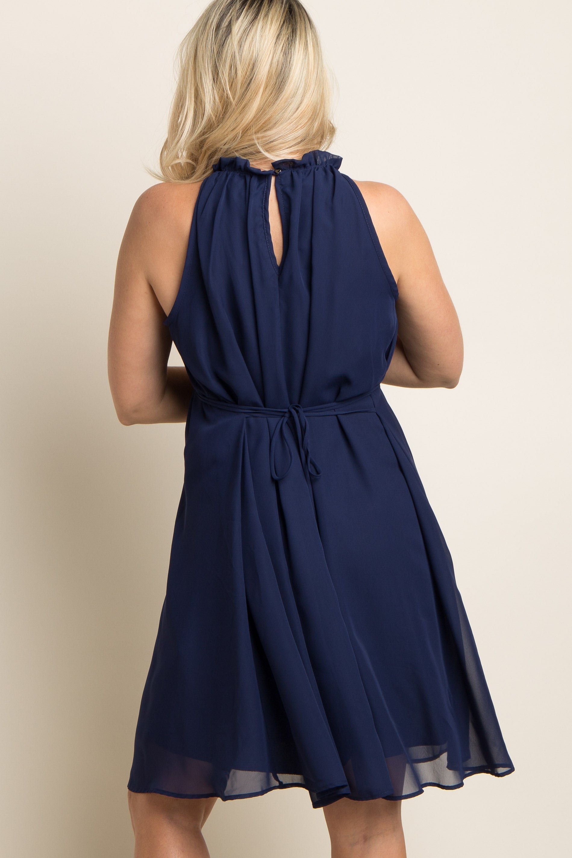 Navy Blue Chiffon High Neck Maternity Dress