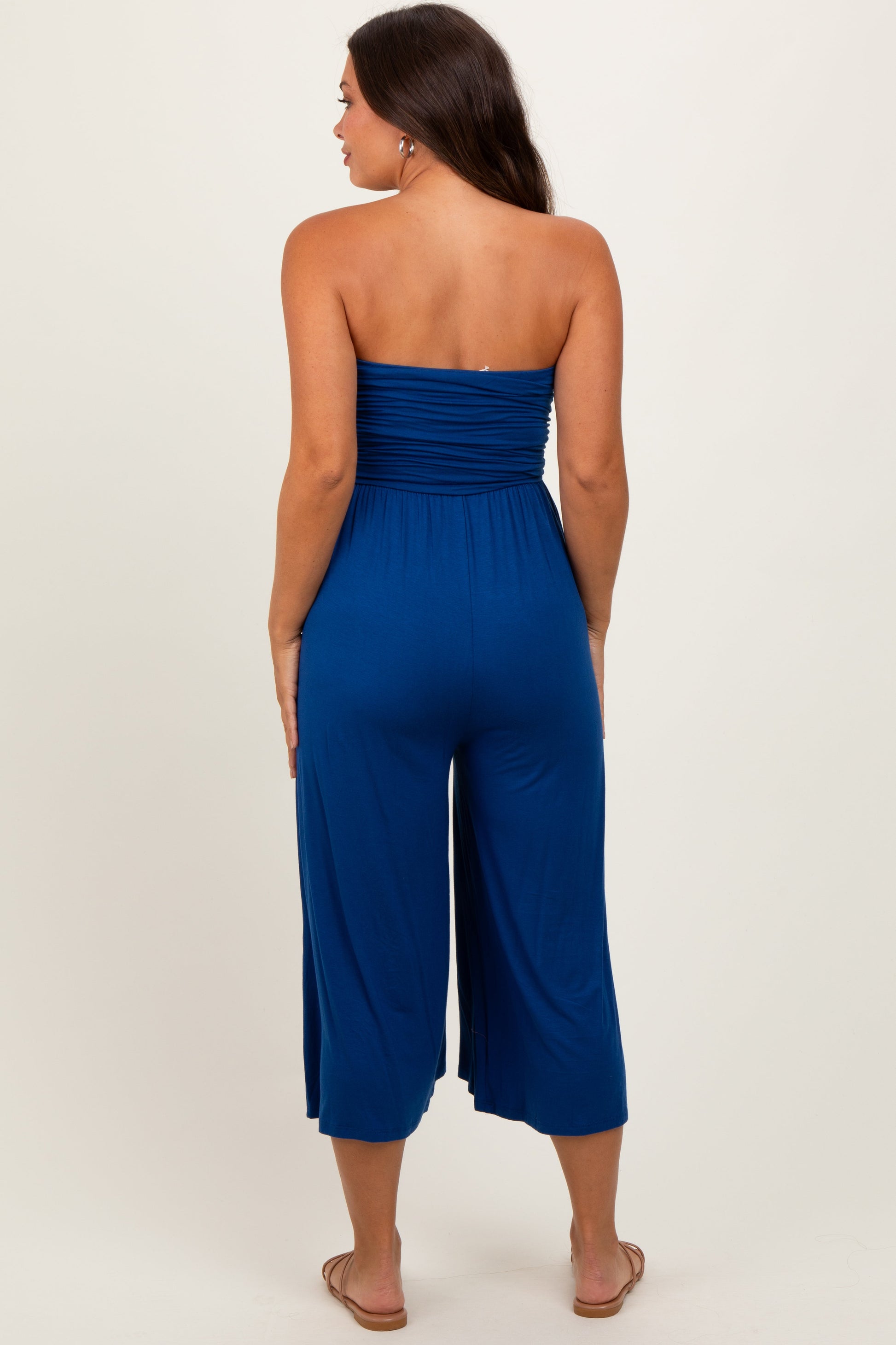 Navy Double Layered Strapless Tube Top Maternity Jumpsuit