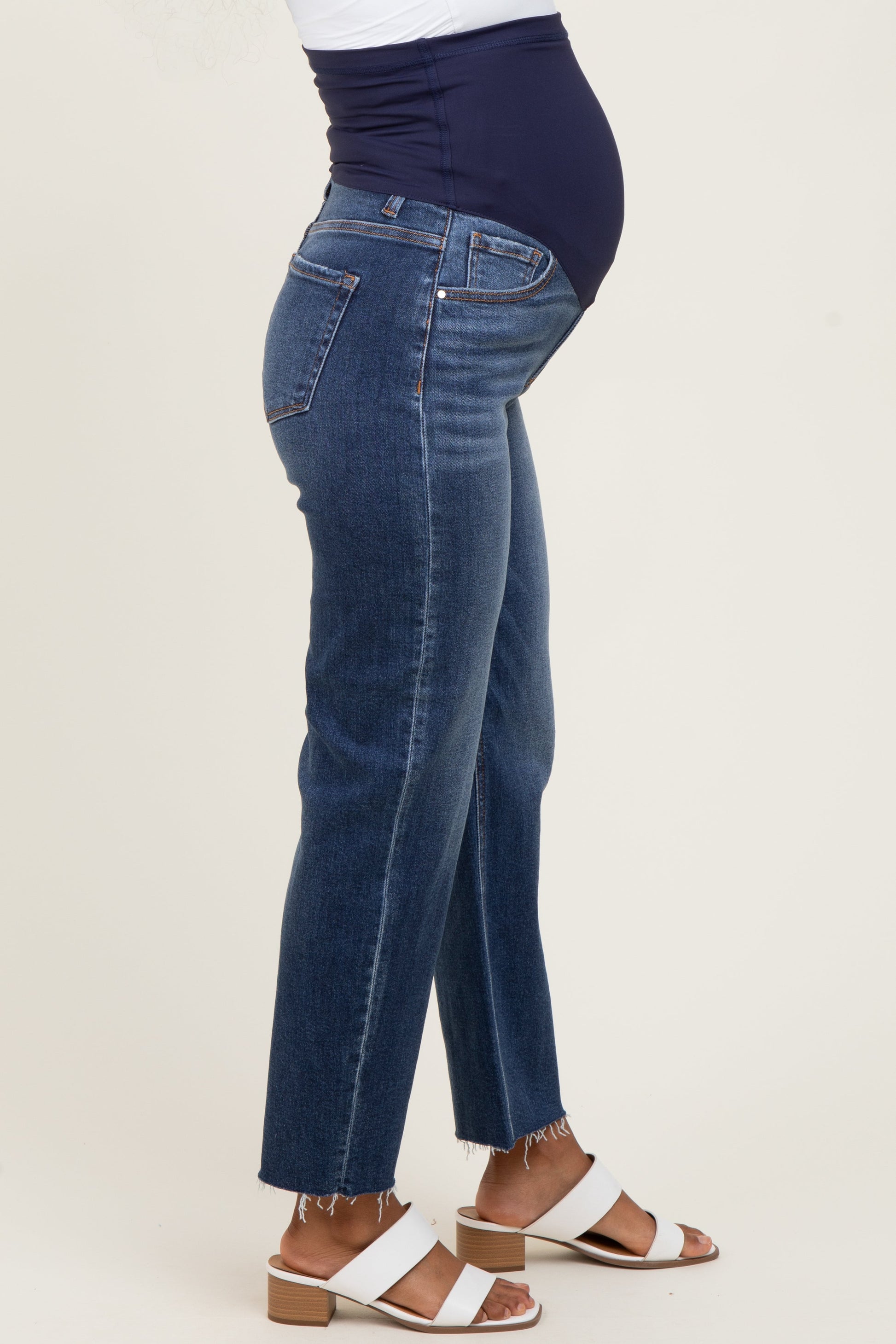 Navy Raw Hem Ankle Straight Leg Maternity Jeans