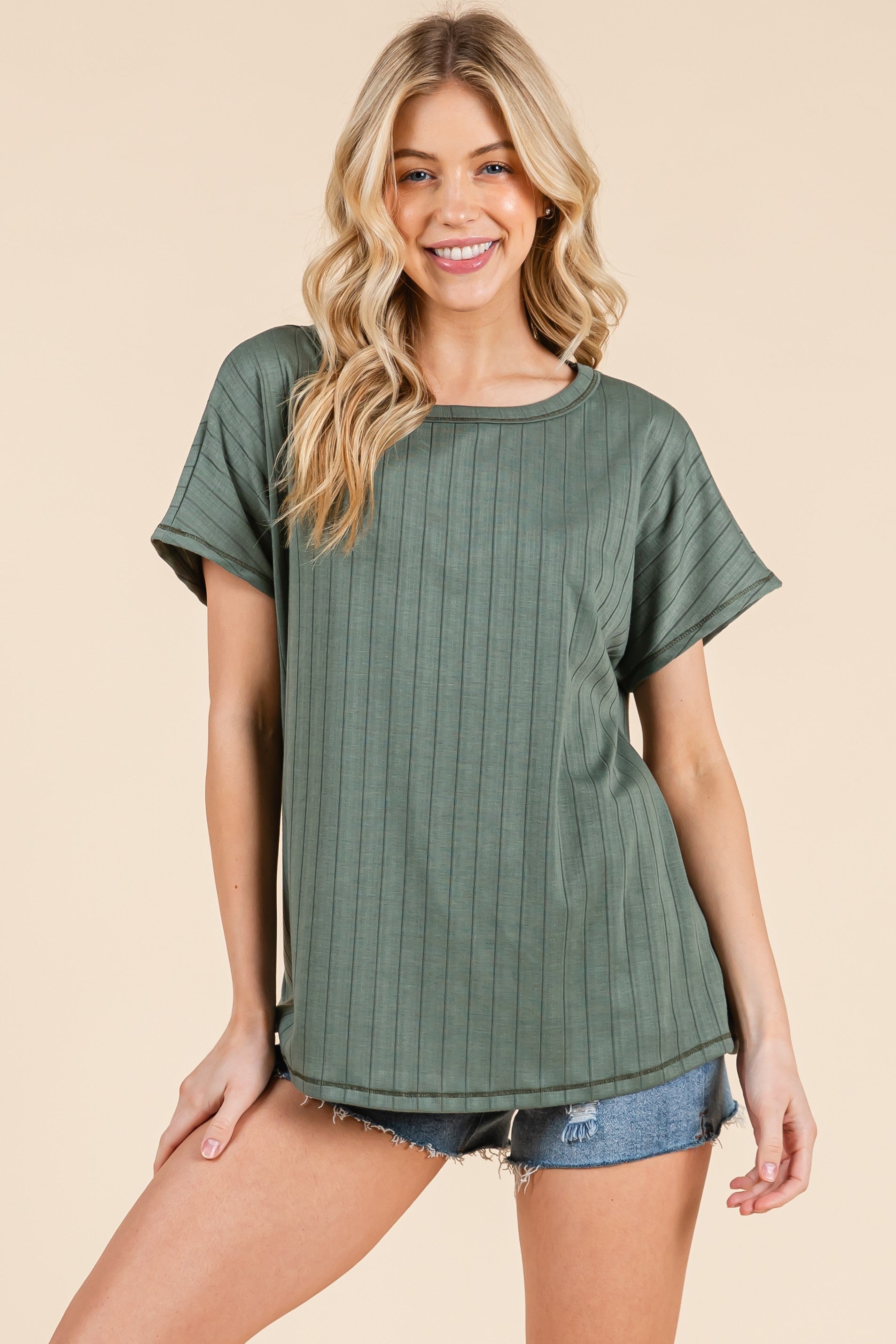 Elevate your casual wardrobe with our Olive Ribbed Relaxed Tee, designed for effortless style and all-day comfort. Crafted from soft, breathable fabric with a subtle ribbed texture, this tee offers a flattering relaxed fit that drapes beautifully on any body shape. The versatile olive green shade pairs perfectly with denim shorts, jeans, or skirts, making it your go-to top for laid-back weekends or casual outings. Featuring a classic crew neckline and short sleeves with a slightly rolled cuff detail, this tee combines simplicity with a modern touch. Easy to dress up or down, it’s a must-have staple for every season.