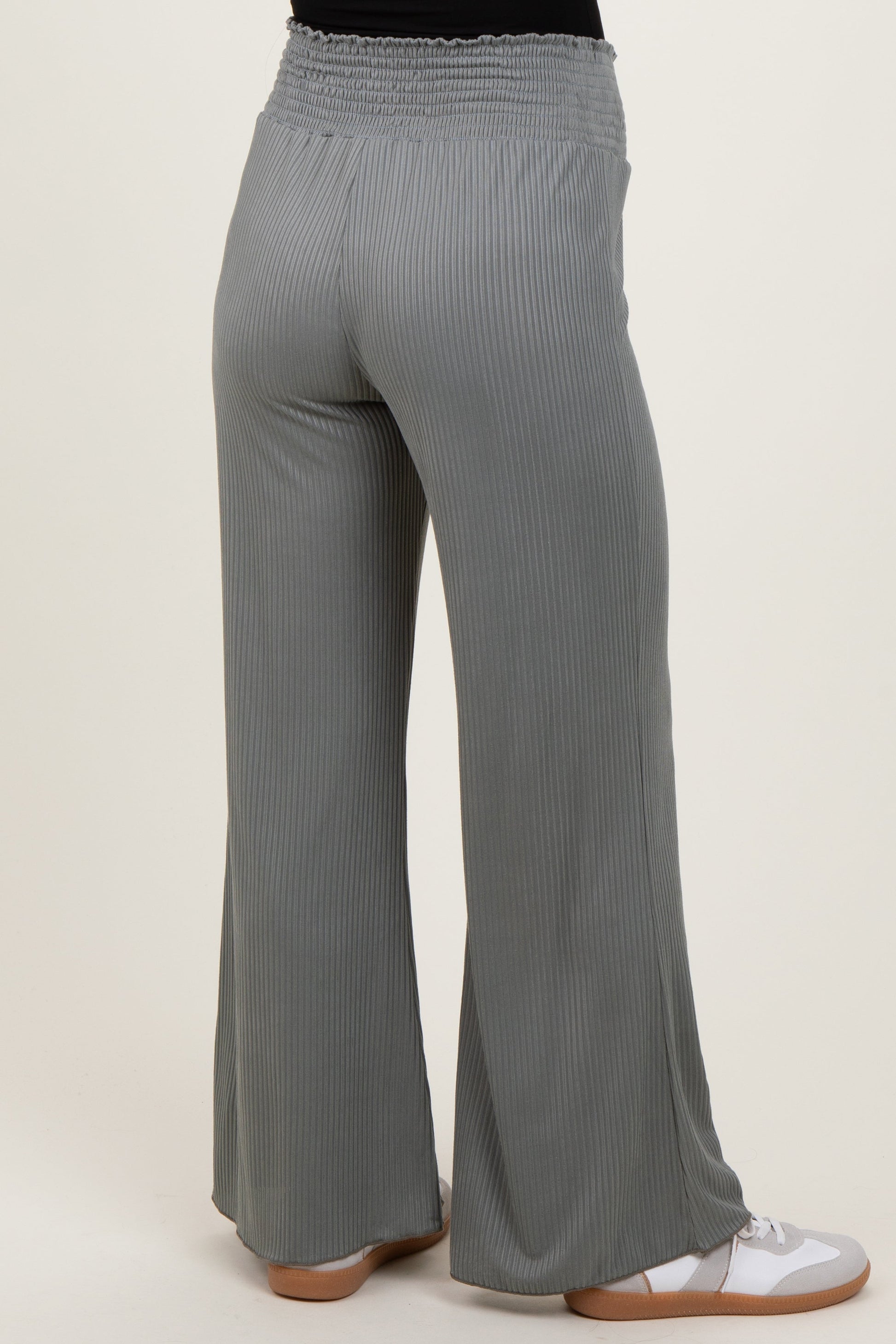 Olive Ribbed Smocked Waistband Wide Leg Maternity Pants