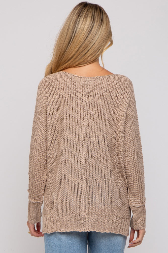 Taupe Chunky Knit Side Slit Maternity Sweater